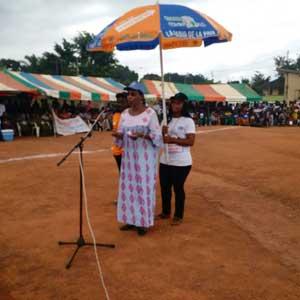 Guest speaker at the forum, the Special Representative of the United Nations Secretary-General and head of the United Nations Operation in Côte d'Ivoire (UNOCI), Mrs Aïchatou Mindaoudou, accompanied by the Deputy Force Commander, General Didier Lhote, with the Prefect of the Region and Prefect of the Department of Gagnoa, N'Zi Kanga Rémi, the Mayor, Metchu Bamba. Recommendations were made by the traditional chiefs, community and religious leaders, women's and youth associations during workshops organised on the eve of the forum.