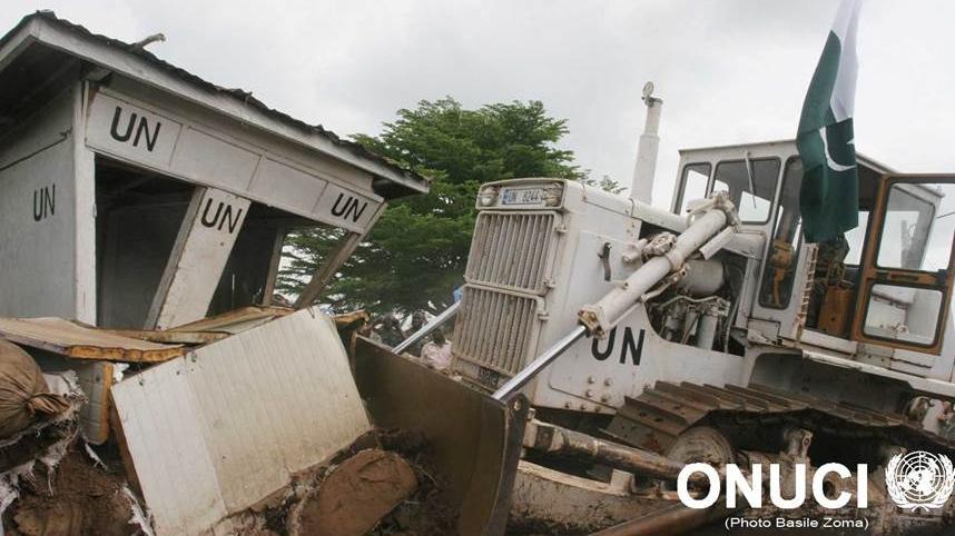 HomeAbolition of the former zone of confidence: UNOCI vehicles demolishing barriers (N’Gatta Dolikro, April 2007) Abolition of the former zone of confidence: UNOCI vehicles demolishing barriers (N’Gatta Dolikro, April 2007) 08 October 2015Share