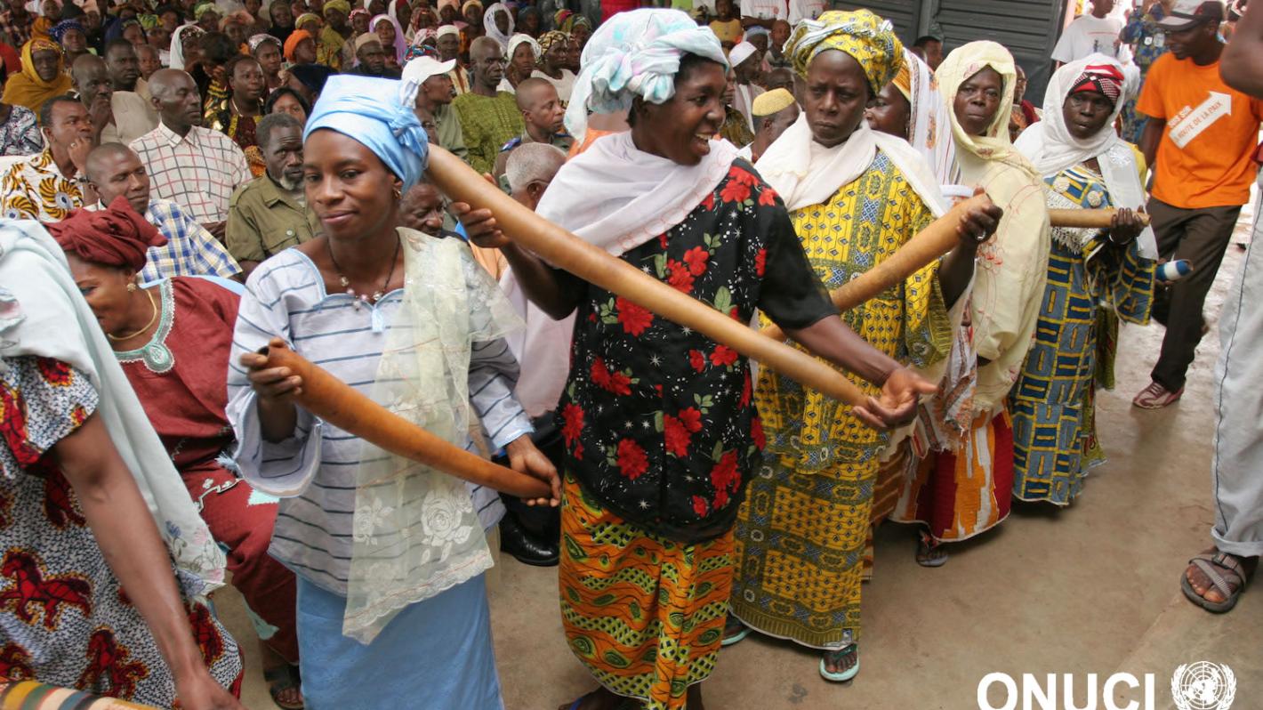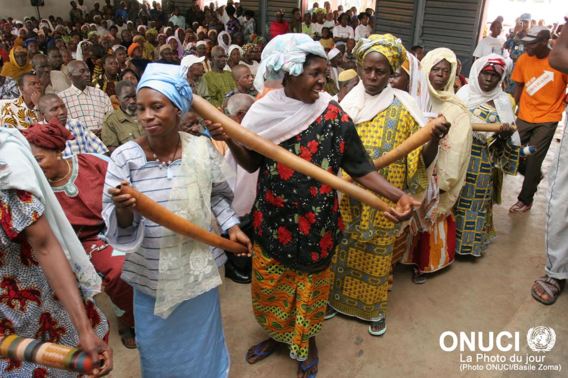 HomeArtistic performance by a group of women during a civil society forum on the culture of peace (Boundiali, May 2008) Artistic performance by a group of women during a civil society forum on the culture of peace (Boundiali, May 2008) 21 January 2016Share