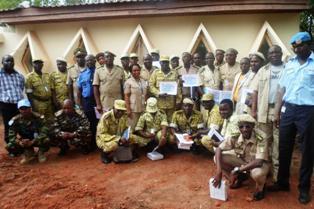 In Korhogo, situated 588 km north of Abidjan, during June and July 2013, two workshops were organised. The first was on « the duties and obligations of the Moto and Mobile Brigades». The training focused on four modules : « the duties and missions of the Moto and Mobile Brigades » ; « the organisation of the Brigade » ; « the challenges of Brigade in sensitive areas » and «the complementary nature of tasks between different units ».