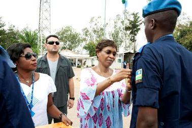 One of the highlights of UN Day in Bouaké was a medal parade ceremony for 33 UN police officers serving with UNOCI in recognition of the commitment to work for the implementation og the Mission's mandate. The medal recipients who came from 14 troop contributing countries were decorated by the Special Representative who paid homage to them. She urged the UN police officers to scrupulously respect the United Nations code by always taking into account the culture and traditions of the people that they serve on a daily basis. Mrs Mindaoudou thanked the administrative authorities, religious and traditional leaders, as well as the people of Bouaké for their support to the UNPOL in carrying out their tasks.