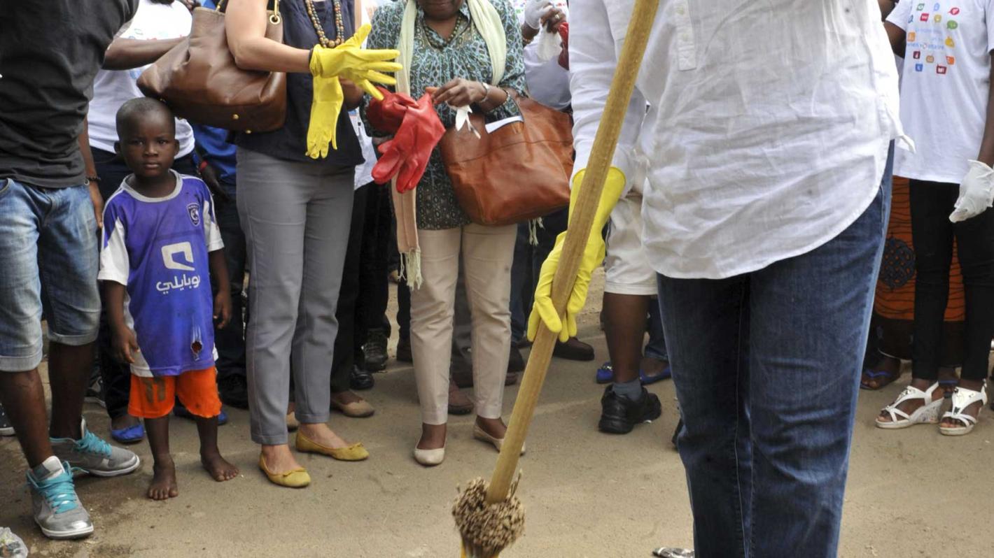 Celebration of International Volunteer Day: The Special Representative took part in a clean-up operation organized by UNOCI at the small market in Bromakote in Adjamé (Abidjan, December 2015)