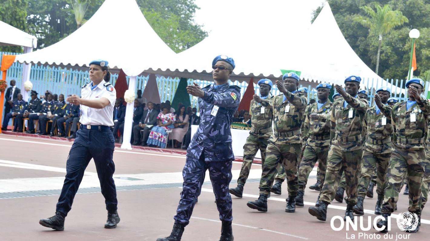 UNOCI military and police forces paraded in front of officials at the ceremony marking the 56th anniversary of the independence of Cote d’Ivoire (Abidjan, August 2016)