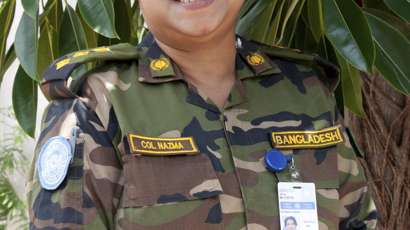 Colonel Nazma Begum, Commander of UNOCI Bangladeshi Contingent is the first female military contingent commander in the history of the United Nations (Daloa, May 2016)