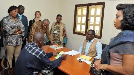 The Deputy Special Representative of UN Secretary-General in Cote d'Ivoire, Arnauld Akodjenou on Thursday 3 July 2014 visited the Centre for public hearings of the national Commission for Dialogue, Truth and Reconciliation (CDVR) at Vridi, south-east of Abidjan. He was accompanied by the resident representatives of the UN High Commissioner for Refugees, UN Women, UN Population Fund and the UN Children's Fund as well as representatives of the ambassadors of Belgium and Great Britain in Cote d'Ivoire.