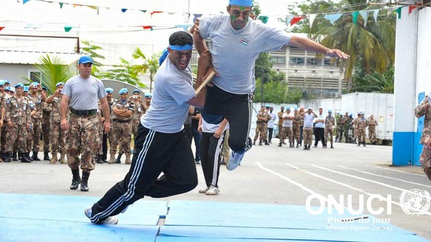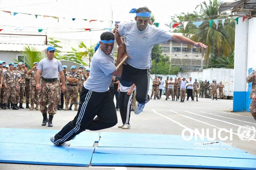 A fight demonstration by peacekeepers from UNOCI's Jordanian Contingent during a medal parade ceremony (Abidjan, March 2012)