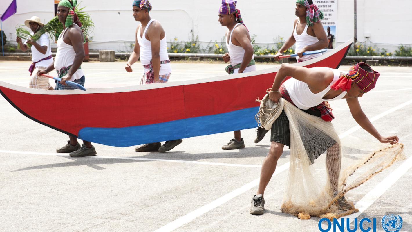 Fishing is one of the main activities among certain populations in Bangladesh and is the subject of this performance by UNOCI's Bangladeshi Contingent during a medal parade ceremony at the Mission's HQ (Abidjan, January 2016)