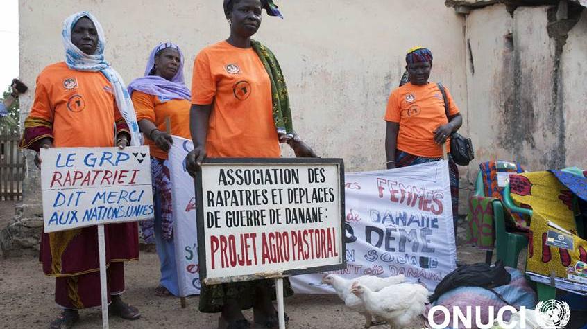 Former Ivorian women refugees, on their return from Liberia, grouped together in organisations to achieve better reintegration into their communities (Danane, April 2016)