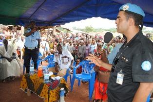 UNOCI's Public Information representative Pierre Aby spoke about gender-based violence, physical aggression and female genital mutilation and its serious consequences. He called on the villagers to stop such malpractices including child labour and urged them to report perpetrators to the authorities.