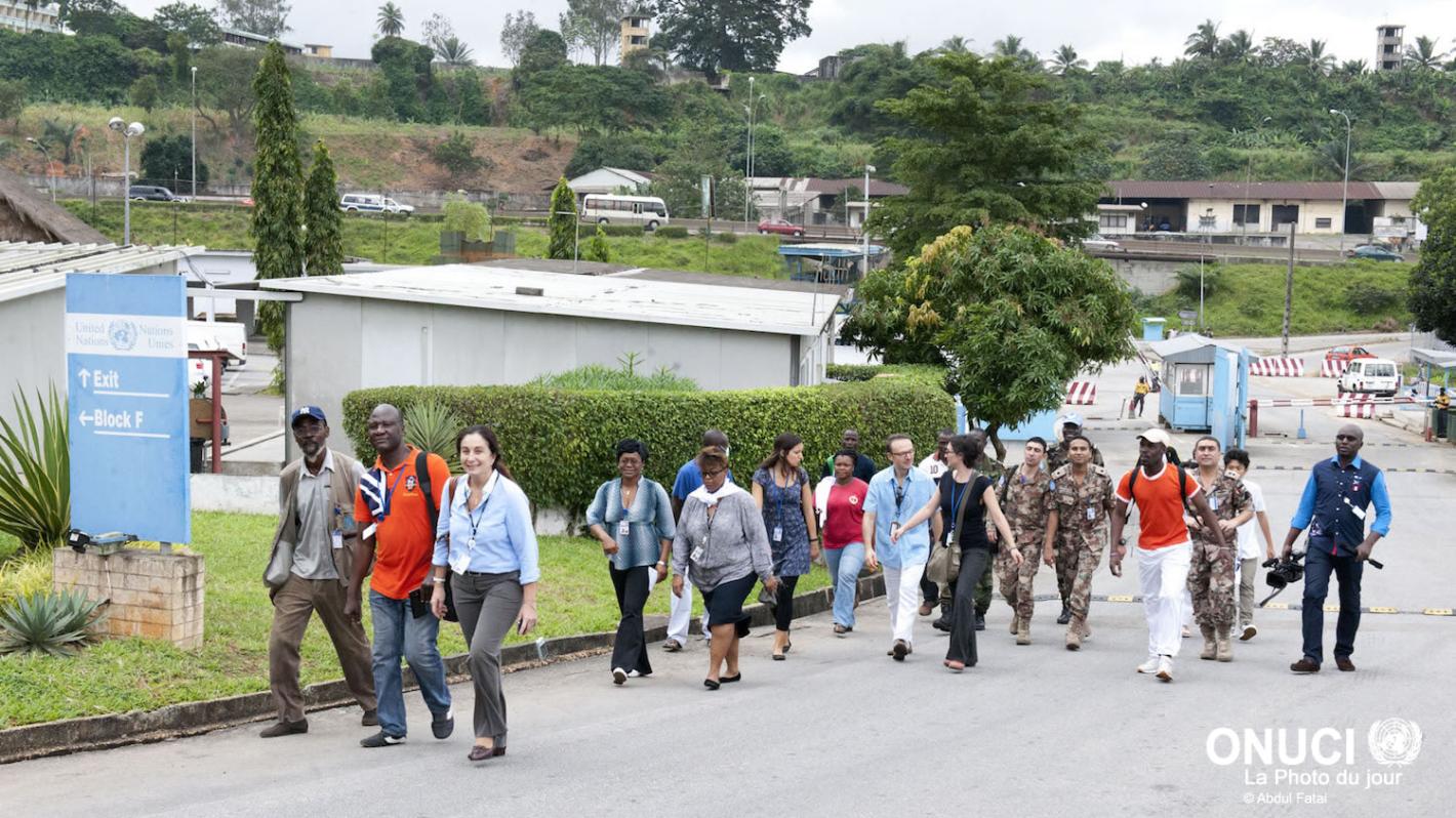 UNOCI Staff walking on Mental Health Day: Walking is an exercise that can contribute to mental health (Abidjan, November 2014)