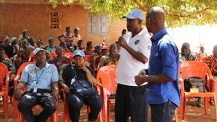 A member of UN Police, Laurent Naraguma discussed the protection of civilians and the fight against gender-based violence. He sensitized village authorities on the handling of cases of violence in which girls and women are victims and advised them against out-of-court settlement of such cases because it promotes the impunity of perpetrators.