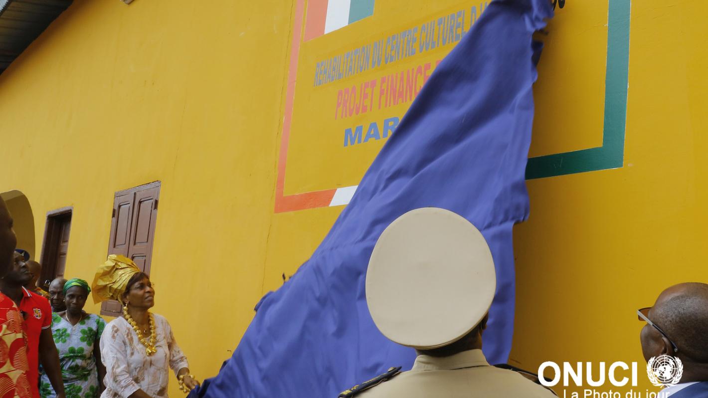 The Special Representative inaugurates the new Cultural Centre of Agnibilekrou, rehabilitated by UNOCI, as part of its Quick Impact Projects Program ( Agnibilekrou, July 2016 )