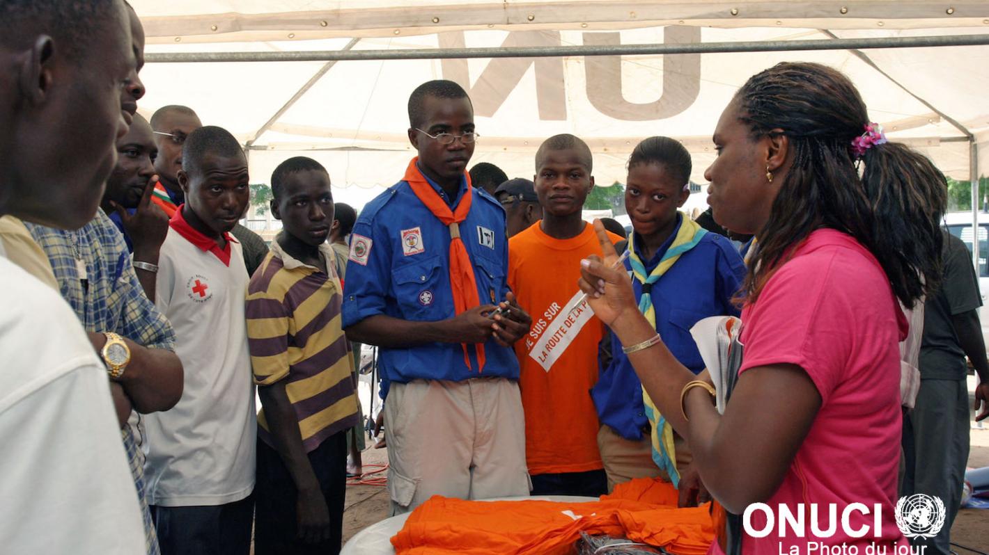 UNOCI’s mandate being explained to a group of youth during a peace caravan (Abidjan, February 2007)