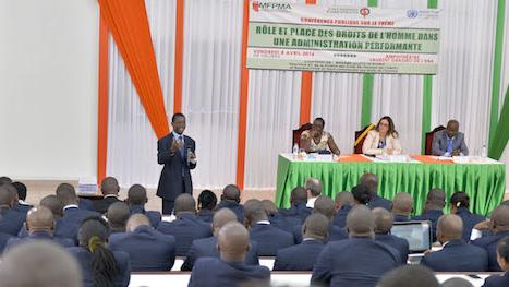 The Human Rights Division of the United Nations Operation in Côte d’Ivoire, in partnership with the École Nationale d’Administration (ENA) - National School of Administration, on Friday, 8 April 2016, organized a public conference on the theme: ‘’The Role and Place of Human Rights in an Efficient Administration » in Abidjan.