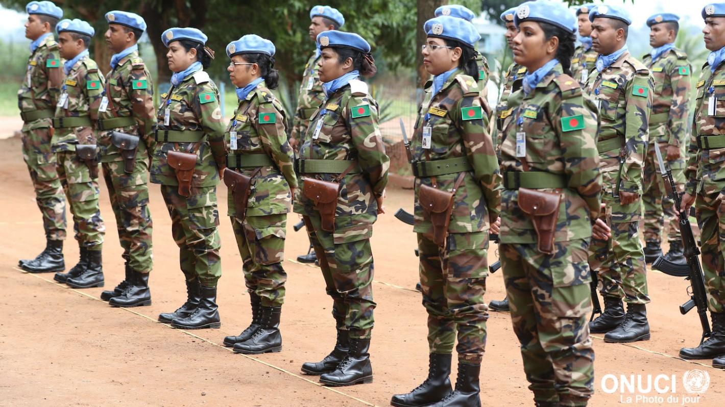 Peacekeepers of the UNOCI Bangladeshi Medical Contingent stand ready to receive UN medal awarded to them (Daloa, August 2016)