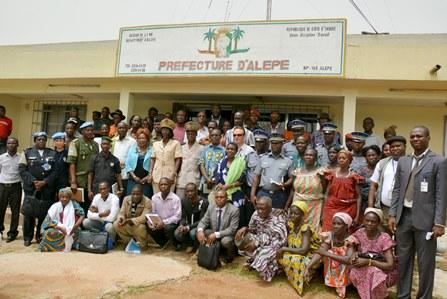 The meeting was presided over by the Prefect of Alepe division and brought together a hundred participants including the Mayor of Alepe, the forces of law and order, the gendarmerie, the Ivorian army (FRCI) and wardens of the Water and Forestry department. Others included members of women's cooperatives, youth associations, traditional authorities, media practitioners and senior administrative authorities.