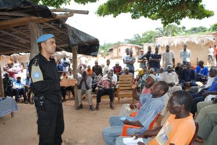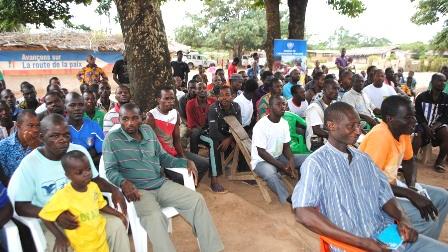 A meeting to sensitise the population of Tehebly, 504 km north-west of Abidjan on social cohesion and human rights was organized on 26 June 2014 by the UN Operation in Cote d'Ivoire (UNOCI) in collaboration with the NGO .