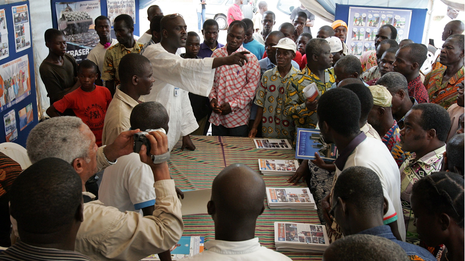 Home- The public visiting an information stand during UNOCI's forum organized in Tiebissou (April 2007) - The public visiting an information stand during UNOCI's forum organized in Tiebissou (April 2007) 06 August 2015Share
