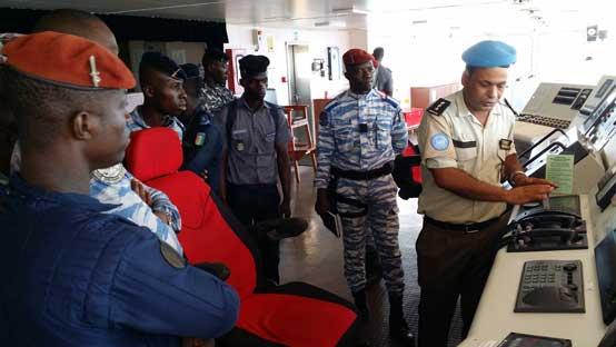 Participants were instructed in maritime rights, navigation, the lights which guide ships in the night and maritime symbols, the signs which show a ship in distress, maritime vocabulary and weather, maritime maps and oil slicks by Captain Touhemi Zidi of the United Nations Police. The theoretical course were followed by practical exercises.