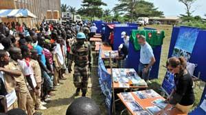 In addition to the blood donation operation, the different UN agencies set up stands from which they explained their activities and mandate to local people.