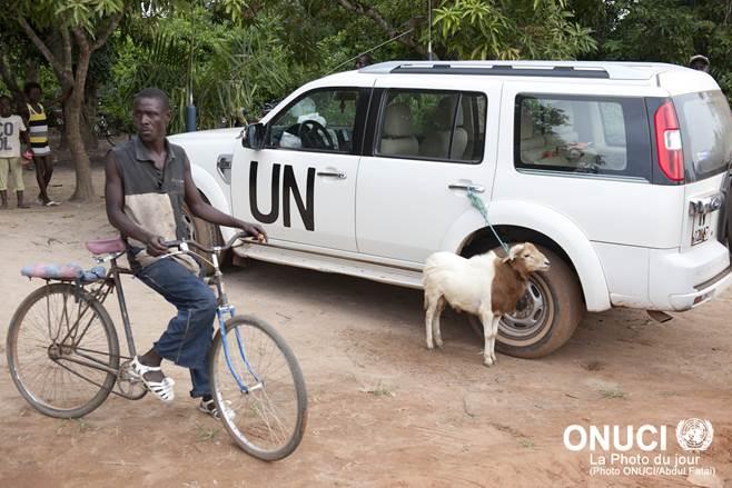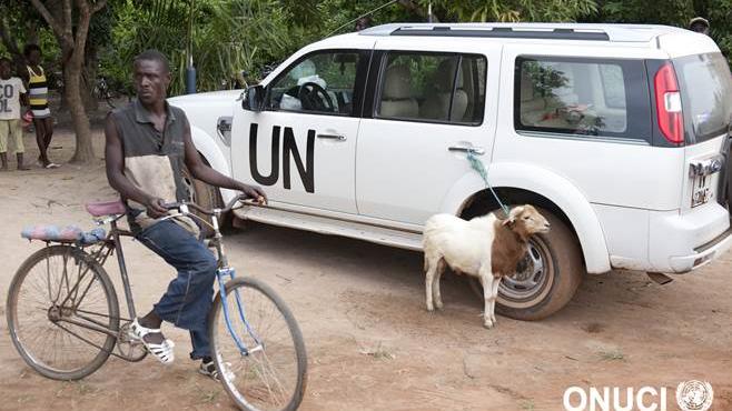 A sheep of peace : a present offered to the United Nations delegation by the people of Bagohouo during an inauguration ceremony of local government buildings rehabilitated by UNOCI (May 2015)