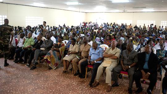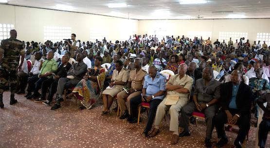 Before the end of discussions which involved some 1000 people, the Prefect of the Region and Prefect of Gagnoa, Nzi Remi Kanga, asked the Special Representative to deliver a message to the gathering. In her speech, the Chief of UNOCI started by saying that she had come first and foremost « to present UNOCI's condolences and show her compassion to the wounded and sympathise with those who had lost their property ». She welcomed the responsible way that people in general had behaved by taking part in the meeting which had provided them with an opportunity to express themselves. Mrs Mindaoudou stressed « the values of peace which should be paramount above all else ».