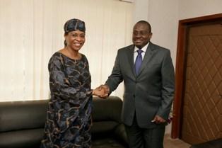 The Special Representative of the United Nations Secretary-General and head of the United Nations Operation in Côte d'Ivoire (UNOCI), Aïchatou Mindaoudou, on Tuesday, 23 July 2013, met with Fidèle Sarassoro, Director of the National Authority for Disarmament, Demobilisation and Reintegration of ex-combatants (ADDR). The visit was part of a series of encounters undertaken by the new Special Representative with partners of UNOCI since she took office on 12 July 2013.