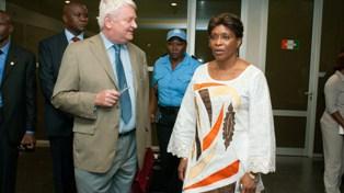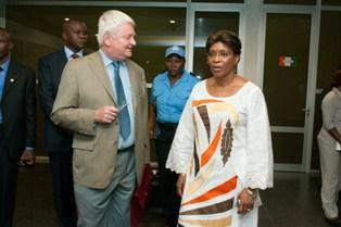 Abidjan, 29 October 2013...The Special Representative of the United Nations Secretary-General for Côte d'Ivoire, Mrs Aïchatou Mindaoudou, this evening, welcomed the head of the United Nations Department of Peacekeeping Operations (DPKO) at Abidjan international airport, on his arrival to participate in a retreat to mark the golden jubilee of the African Union.