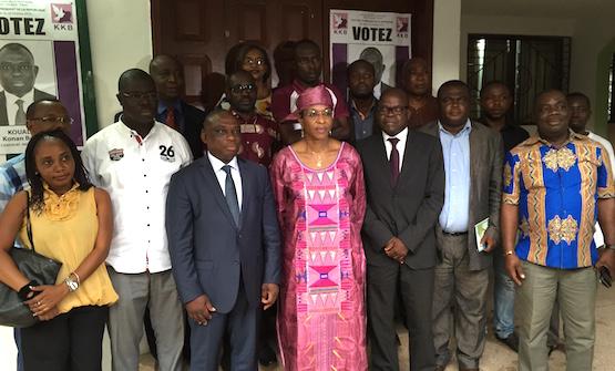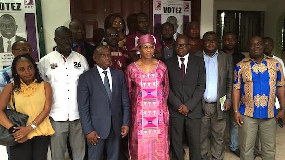 The Special Representative of the United Nations Secretary-General for Côte d'Ivoire, Aïchatou Mindaoudou, on Tuesday, 3 November 2015, went to the campaign headquarters of presidential candidate Kouadio Konan Bertin, to congratulate him on his sense of nationalism during the Ivorian presidential election held on 25 October 2015.