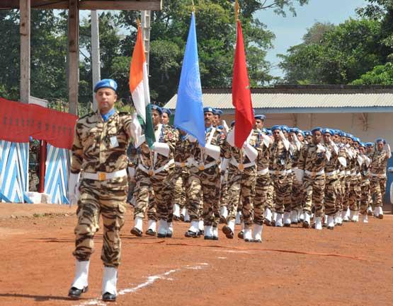 After the military honours and a review of the troops, the Special Representative thanked the peacekeepers from the Moroccan Contingent for their professionalism and devotion to duty. The contingent actively participated in the good conduct of the presidential election on 25 October 2015.