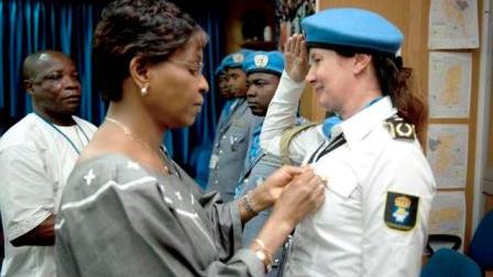 The Special Representative of UN Secretary-general in Cote d'Ivoire, Mrs. Aichatou Mindaoudou on Wednesday 27 August 2014 decorated six penitentiary administration officers of the UN Operation in Cote d'Ivoire (UNOCI) deployed in various prisons in the country for concrete services rendered to the nation.