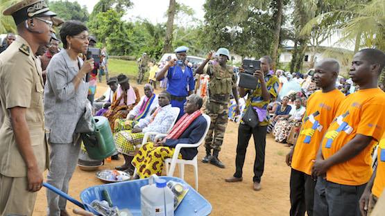 After a warm welcom from the Mayor of Grabo, Mr Martin Dougboyou Takouo, the secretary-general of Tabou préfecture, Kofi Kouadio, speaking on behalf of local residents, thanked the Special Representative for her support. For his part, the deputy prefect of Grabo, Traoré Djibril, explaimed the origin of the two projects, which he recalled were part of the recommendations made during intercommunity meetings organised in March and October 2014 in Grabo, following a series of violent and painful incidents which had taken place in the town. « Dear women and youths now you need to do your part because your projects attracted our attention because of their character to promote social cohesion. We believe that these projects will provide women, who are the ones who often look after everyone, to speak to each other, » he told the women.