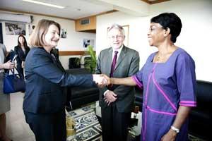 The Special Representative of the Secretary-General of the United Nations for Côte d'Ivoire, Ms. Aichatou Mindaoudou, met, on Tuesday, March 31, 2015, in Abidjan, the Deputy Assistant Secretary of State for International Organization Affairs at the US State Department, Ms. Victoria K. Holt. She was accompanied by the Ambassador of the United States in Côte d'Ivoire, Terrence Mc Culley.