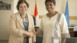 The Special Representative of the United Nations Secretary-General for Côte d'Ivoire and head of the United Nations Operation in Côte d'Ivoire (UNOCI), Mrs Aïchatou Mindaoudou, on 5 February 2014, received the new Representative of the United Nations Children's Fund (UNICEF) to Côte d'Ivoire, Mrs Adèle Khudr, at the headquarters of the United Nations Mission in Abidjan.