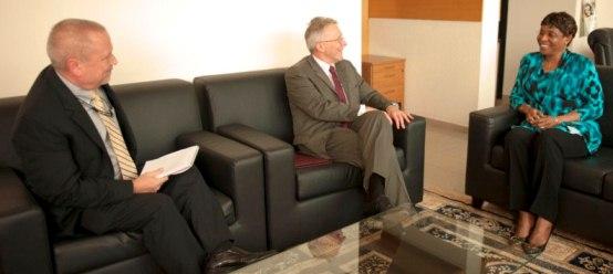 The Special Representative of the United Nations Secretary-General for Côte d'Ivoire and head of the United Nations Operation in Côte d'Ivoire (UNOCI), Mrs Aïchatou Mindaoudou, on Thursday, 6 February 2014, received the United States Ambassador to Côte d'Ivoire, His Excellency Mr. Terence P. McCulley at the UN Mission's headquarters in Abidjan.