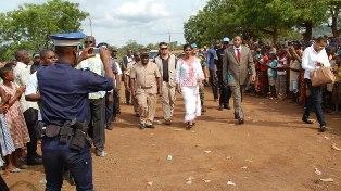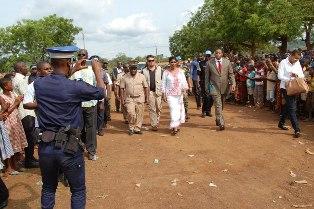 The Special Representative of UN Secretary-General in Cote d'Ivoire, Mrs. Aichatou Mindaoudou on 24 April 2014 visited the population of Angovia, Marahoue sub Prefecture, 300 km centre-west of Abidjan to show them support and compassion during the holding of the 33rd edition of UN Days in Bouaffle. It would be recalled that the inhabitants of Angovia and Allahou Bazi villages were victims of a violent incident in July 2013 causing considerable loss of lives and property.