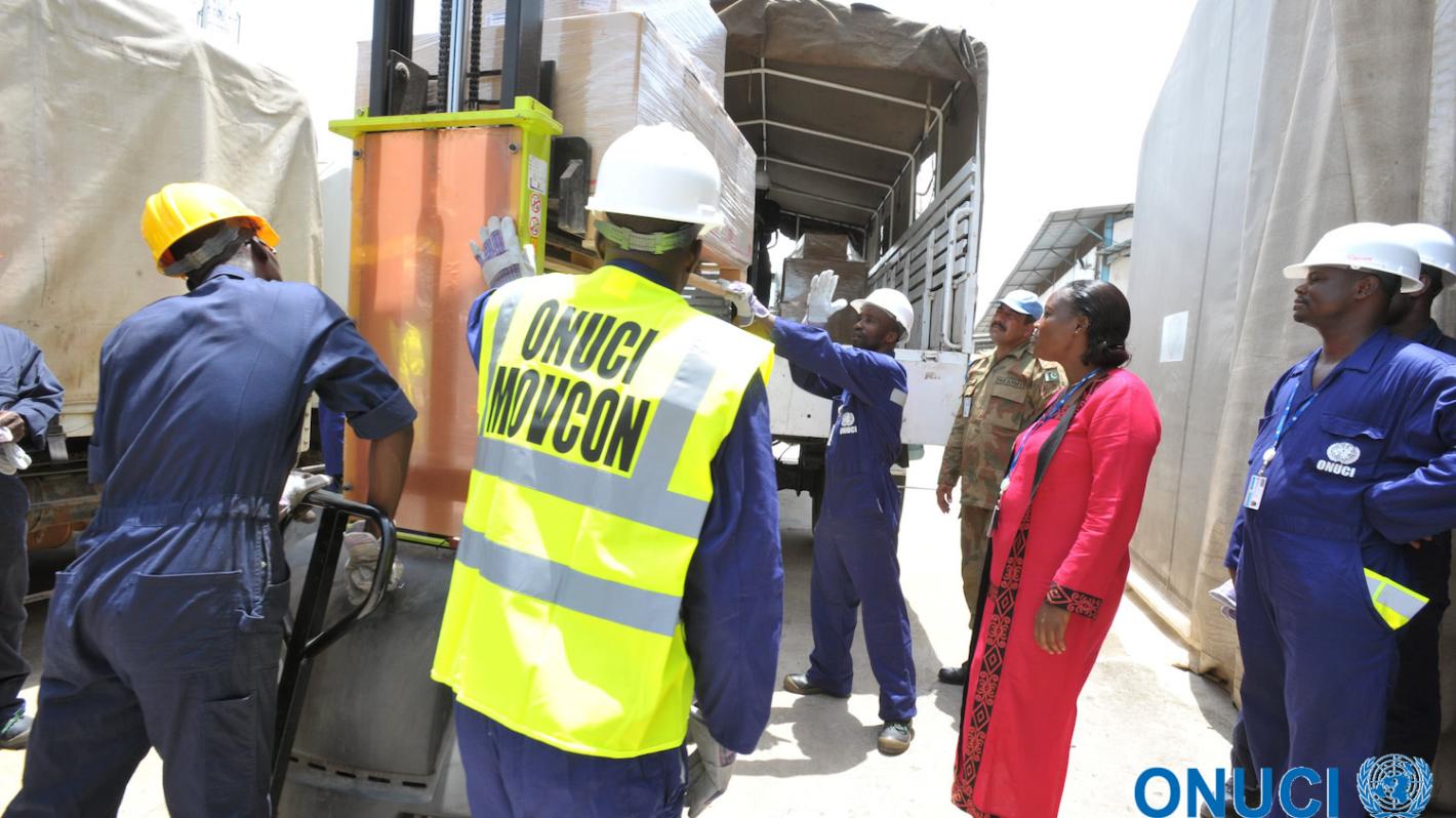 UNOCI is also about logistics: its cargo service MOVCON (Movement Control) hard at work to ensure everything goes smoothly (Abidjan, May 2012)