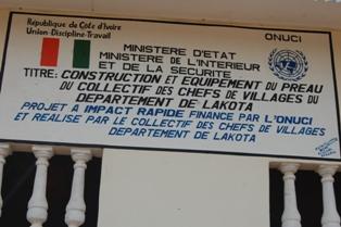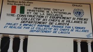 The electrification of the district school, the construction of a meeting place for traditional chiefs and a police station, as well as the rehabilitation and equipping of a community radio: these projects carried out in Lakota, situated 250 km northwest of Abidjan, by the United Nations Operation in Côte d'Ivoire (UNOCI) as part of its Quick Impact Projects Programme (QIPs), were inaugurated on Thursday, 20 February 2014, in the presence of the Deputy Special Representative of the United Nations Secretary-General for Côte d'Ivoire, Arnauld Akodjénou. The projects cost a total of 40 million FCFA (approximately $80,000).