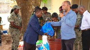 Officials from UNOCI Corrections and Child Protection Units, Civil Affairs and Public Information sections, Aviation, UN Police and the Bangladeshi military contingent visited some 24 female inmates in Man Prison, Tonkpi region, 600 km north-west of Abidjan with gifts including materials for producing liquid soap as well as food and sanitary items handed over by the Coordinator of UNOCI's regional office, Christian Dreesen.