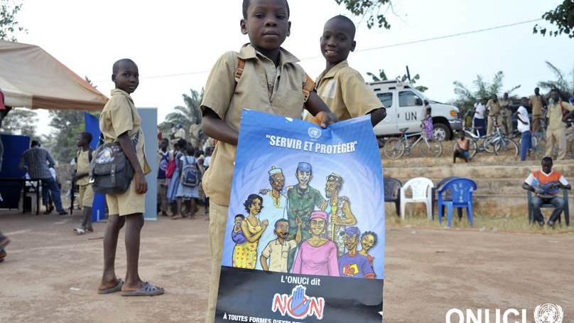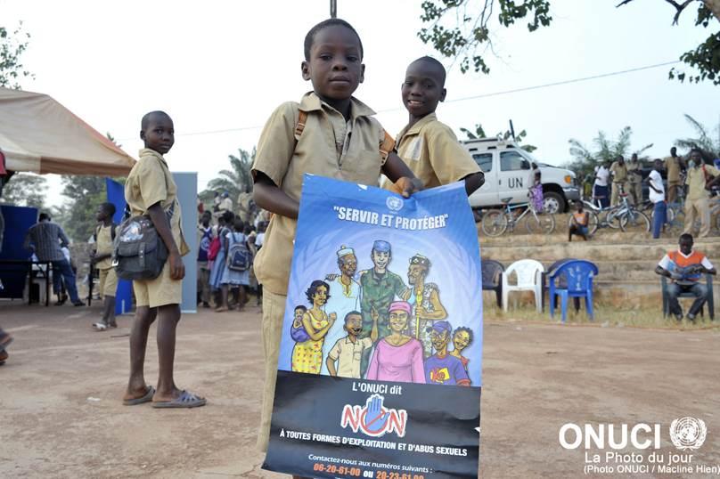 HomeUNOCI Days in Bongouanou: a little schoolboy shows off one of the Mission's posters against sexual exploitation and abuse (February 2015) UNOCI Days in Bongouanou: a little schoolboy shows off one of the Mission's posters against sexual exploitation and abuse (February 2015) 17 September 2015Share