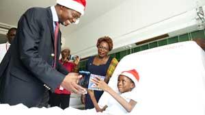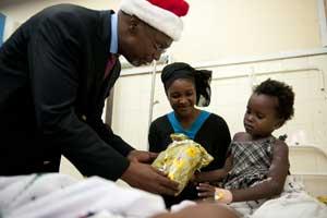 The Deputy Special Representative of the United Nations Secretary-General for Côte d'Ivoire, Babacar Cissé, who led the Mission's delegation, played Father Christmas by distributing the presents to children aged between one month and 15 years. He wished them better health while handing over the presents.