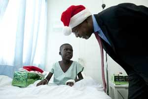 The second act of the annual Christmas Party organized by the United Nations Operation in Côte d'Ivoire (UNOCI) took place at Treichville General Hospital in Abidjan today, 24 December 2014. Exactly one week after providing food, entertainment and presents for some 325 children at its headquarters in Ancien Hôtel Sebroko, the UN Mission went to Treichville General Hospital to distribute Christmas presents to children in the pediatric wards and the Institute of Cardiology in Abidjan.