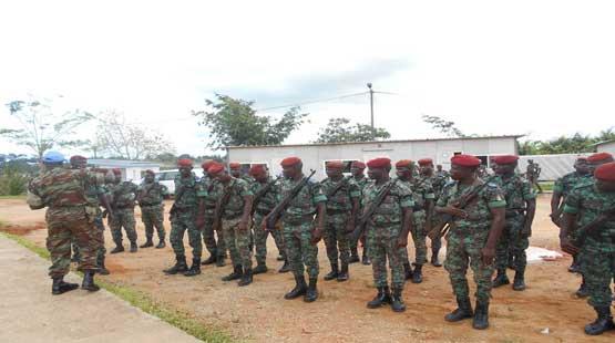 A new FRCI guard then symbolically took over the guarding of the camp which had previously been carried out by UNOCI's BENINBATT. At the end of the ceremony, a visit of the camp was carried out by the two forces.