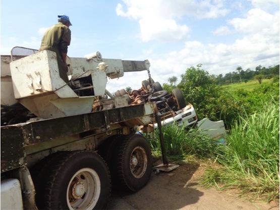 The Contingent quickly dispatched an ambulance, a medical team and two vehicles, including a tow truck, to the accident spot. On its arrival at the accident spot, the emergency response team was able to lift a part of the overturned lorry, thereby saving the life of a man who was trapped beneath it. The man, who was seriously injured was immediately taken to the health centre in Guézon for treatment, while another male victim, who was only slightly injured, was evacuated to the Moroccan Contingent's clinic in Duékoué, where he was treated and released.