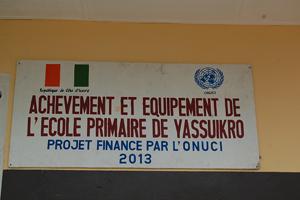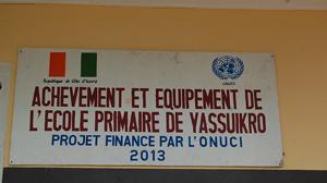 He was speaking at the inauguration ceremony of a building comprising three classrooms which was entirely renovated and equipped with tables and benches and office material by the United Nations Operation in Côte d'Ivoire (UNOCI) as part of its Quick Impact Projects (QIPS) programme to help small communities.