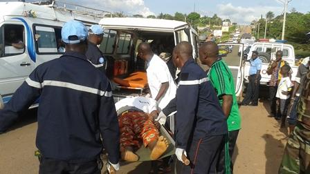The victims, including 4 children who were on board a 4-wheel drive pickup vehicle that had somersaulted killing one person, were rushed in a UNOCI ambulance to the emergency wards of the regional hospital Centre and the general hospital in Gagnoa.