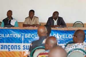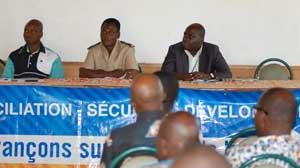 The representative of UNOCI's Civil Affairs Section, Franck Dakouri, who talked on the issue of ''Prevention and Peaceful Management of Conflicts : challenges and perspectives in an electoral context '', highlighted the need to allow the parties in conflict to find workable solutions to their differences in order to ensure that these solutions are effective and lasting for the good of the community. His proposal seemed to attract the approval of most of the participants, judging my the response of the chef of Burkinabés in Kouibly, Ali Gbambsoré, who said: « I welcome UNOCI's initiative because it will bring about peace and tranquility and this in turn will provide us with the right conditions to work peacefully in harmony with our neighbours ».