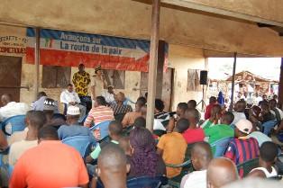 The United Nations Operation in Côte d'Ivoire (UNOCI), in a bid to better educate the local population of Zoukougbeu about its mandate and to encourage them to serve as a role model of peace and development, organized a sensitization meeting with the people on 26 November 2013 in the village, situated 450 km from Abidjan.