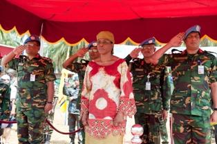 The Special Representative thanked the Bangladesh Contingent for its commitment and sense of sacrifice. Mrs Mindaoudou told recipients that they were being given the medal by the United Nations as a mark of its gratitude for their devotion to peace. She expressed her satisfaction with the work they were doing and their remarkable contribution to the implementation of the mandate of the United Nations Operation in Côte d'Ivoire (UNOCI). Mrs Mindaoudou praised the memory of Bangladeshi soldiers who had lost their lives while serving in peacekeeping missions throughout the world, including in Côte d'Ivoire. She then thanked the Bangladeshi peacekeepers « for the professionalism with which they carried out their work in a difficult situation with many challenges during the past ten months.