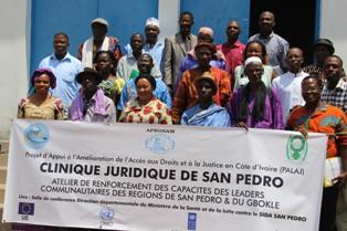 It should be noted that the United Nations is one of the international organisations closely involved with the Legal Clinic of San Pedro. The Legal Clinic is centre which advises people on legal and judicial matters. Its aim is to improve the population's access to justice in Côte d'Ivoire.